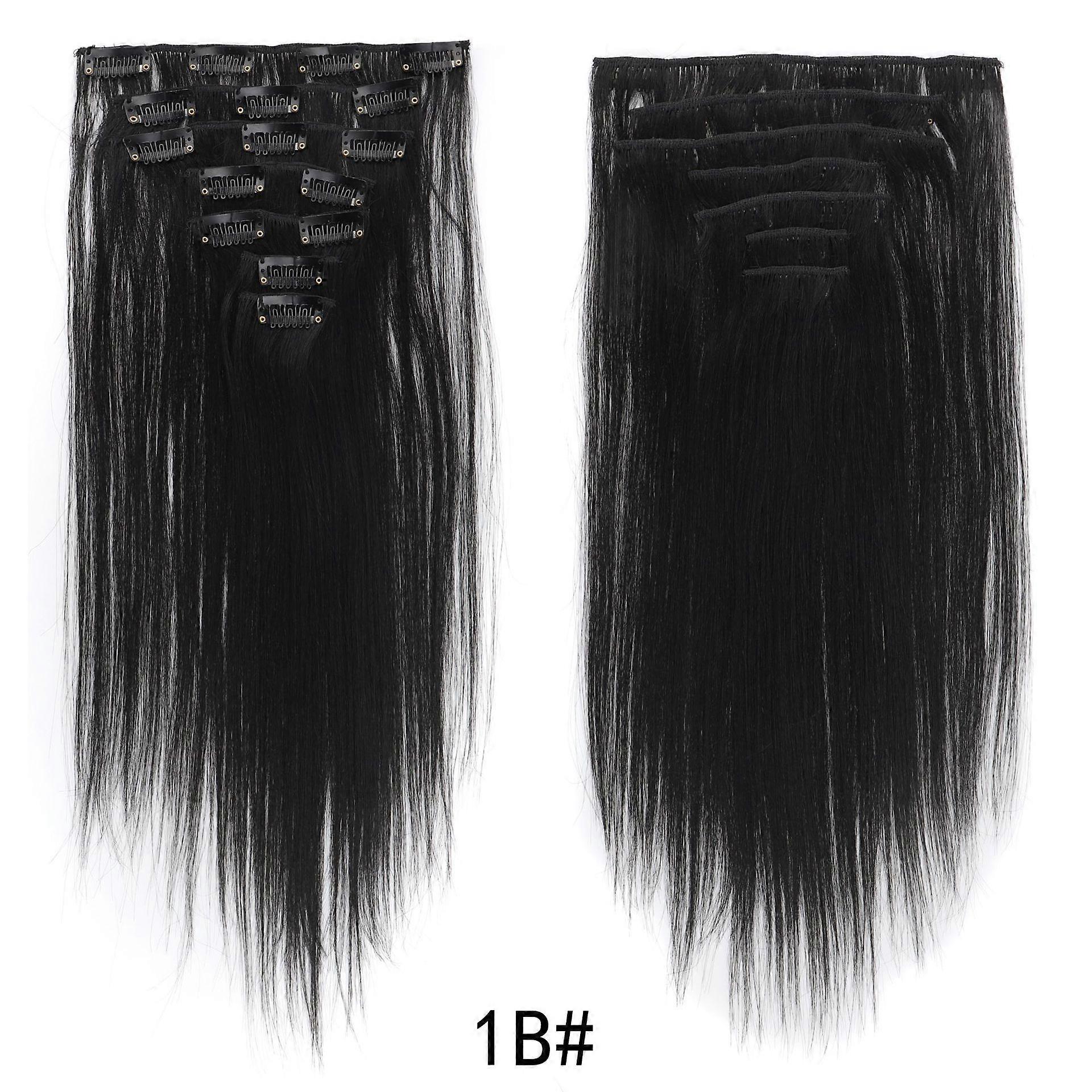16-inch straight hair clip 7-piece wig extension set, medium-short straight hair clip wig