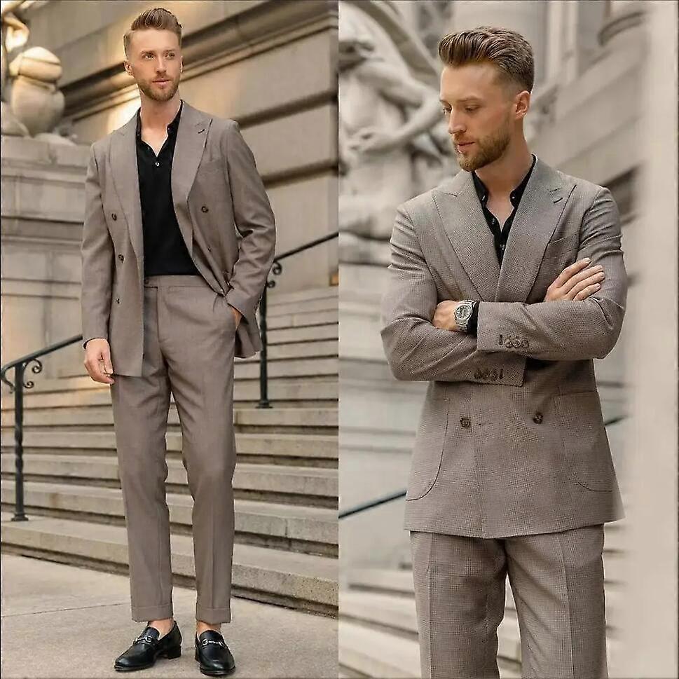 Double Breasted Men's Suits Blazer Cuffed Pants Peak Lapel 2pcs Business Tuxedos