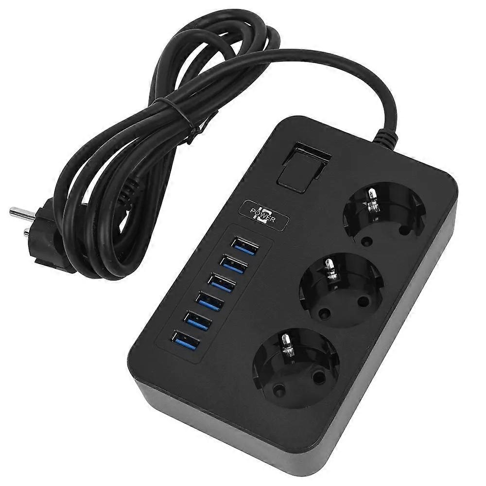3000W High Power Strip 2m Extension Cable 3 AC Outlets with 6 USB Output Port