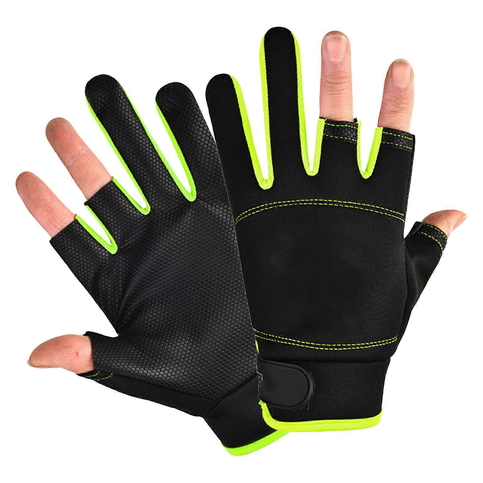 Three Finger Fishing Gloves Motorcycle Gloves Climbing Hiking Cycling Gloves Breathable Fishing Gloves Fishing Equipment green teeth