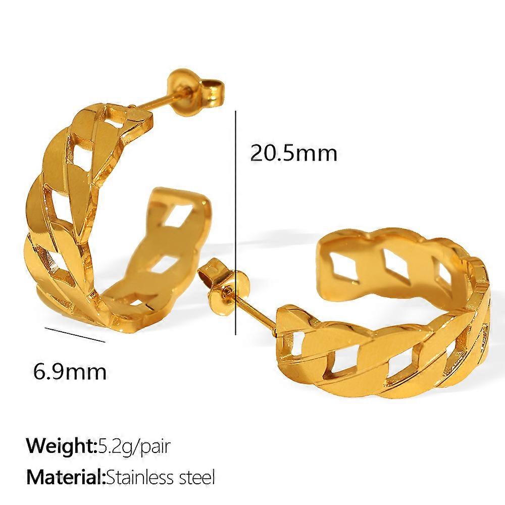 French street style cover girl chain openwork small earrings studs ring titanium steel plated with 18K gold