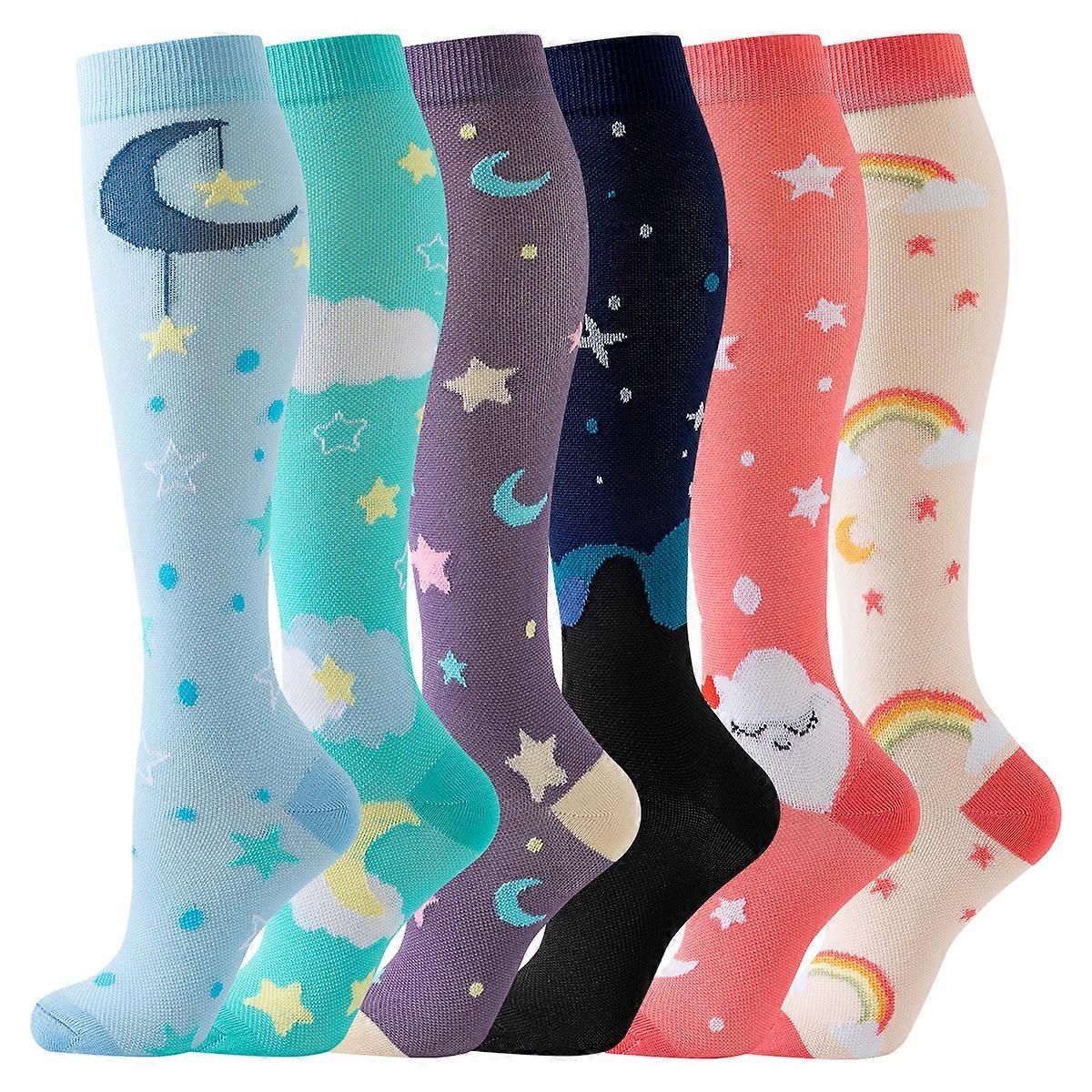 6 Pairs Moon and Star Compression Socks Women Men Medical Breathable Knee High Compression Socks Women Nurse Compression Socks