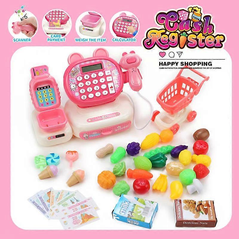 Kids Play House Toy Simulation Cash Register Punch Card Multifunctional Supermarket Cash Register Card Scanning Educational Toy