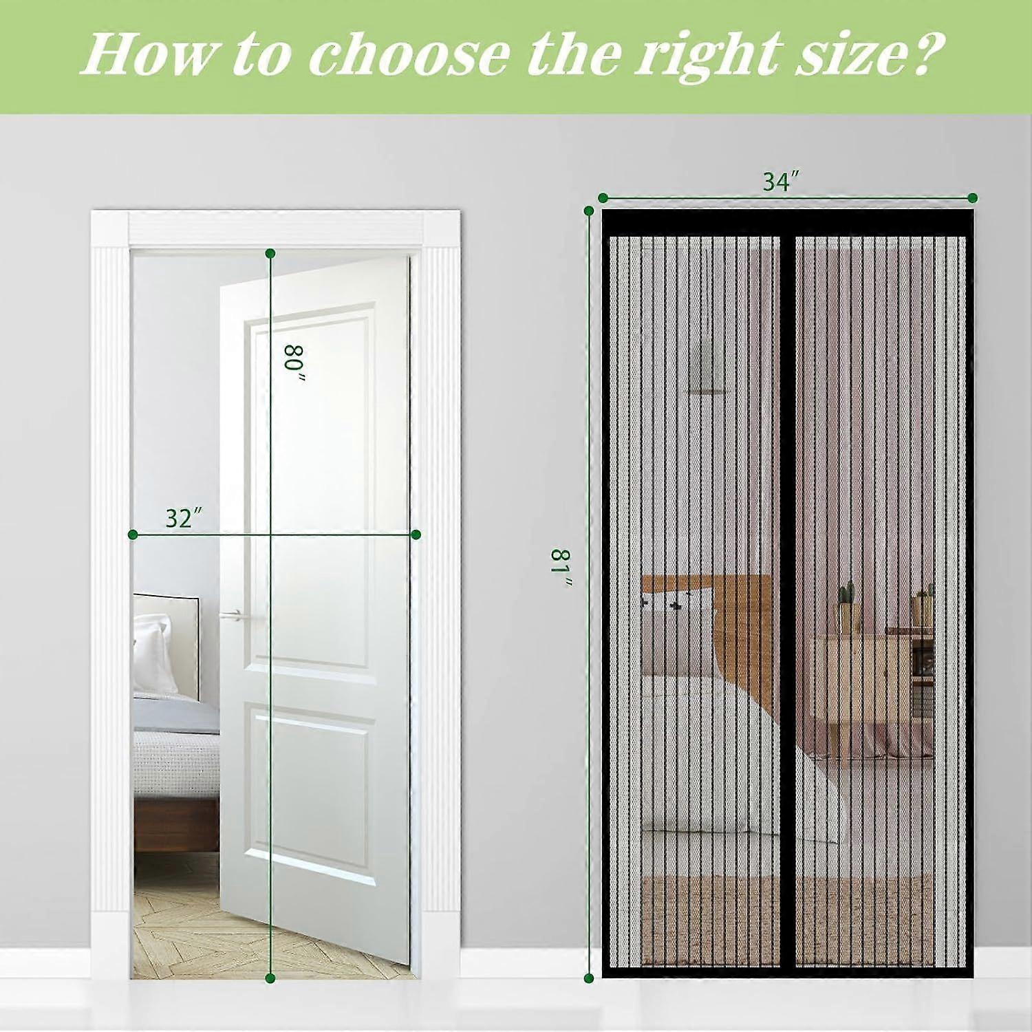 Magnetic Screen Door - Fit Door Size 32 x 80 Inch, Black Heavy Duty Mesh Curtain with Magnetic Closure, Bug Screen for Doorway, Pet Friendly Temporary
