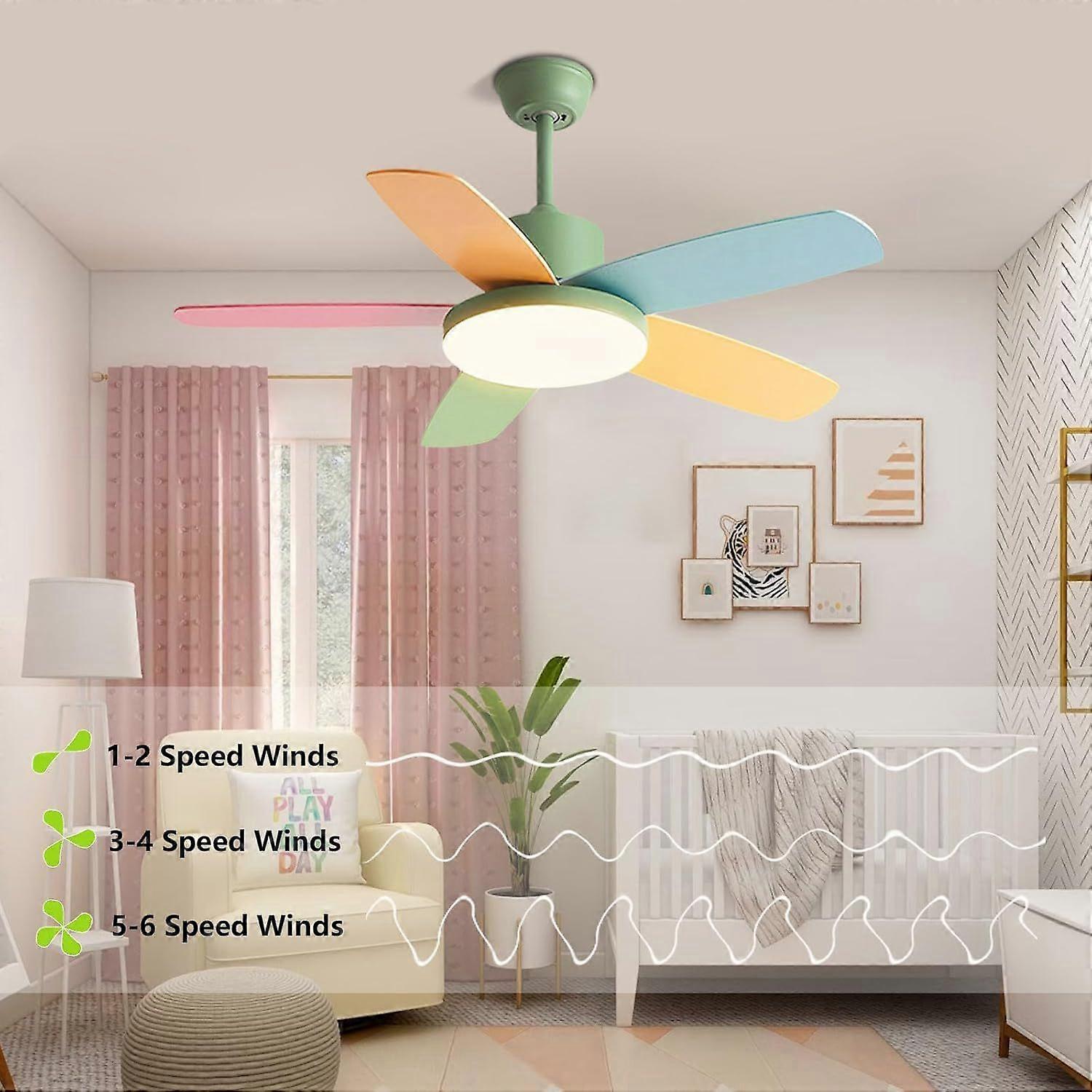 Modern Colorful Ceiling Fan with Light Remote 6 Speed Quiet 36in Ceiling Fans 60W LED 3-Color Changing Green Ceiling Fan Light for Kids Room Bedroom N