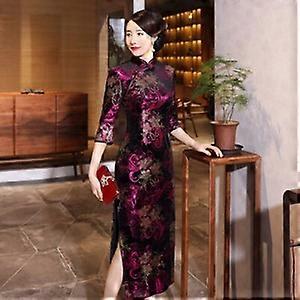 Traditional Chinese Long Dress Women Velvet Cheongsam Prom Qipao Size M-4XL