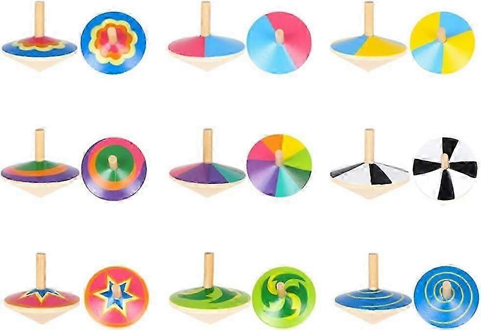 Children's Wooden Painted Spinning Top Toy Multi-color Hand Spinning