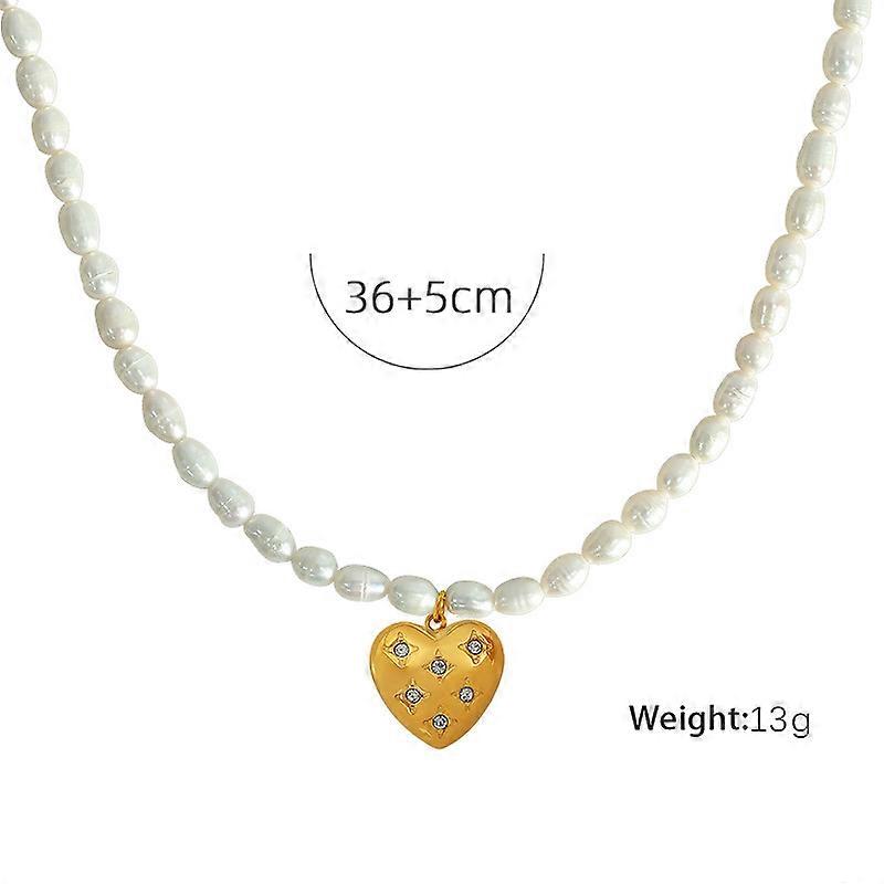 French-style freshwater pearl heart necklace, elegant and gentle pearl clavicle chain, handmade diamond earrings set