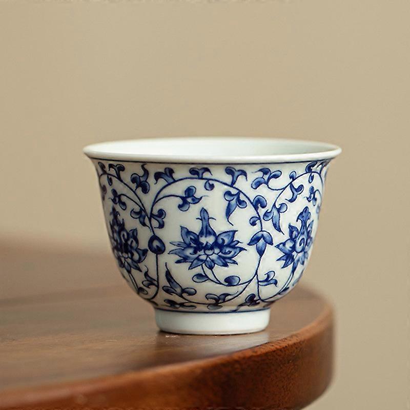 1 Pc Chinese Ceramic Tea Cup Handmade Blue and White Porcelain Teacup Household Tea Bowl Personal Teaware Meditation Cup 60ml