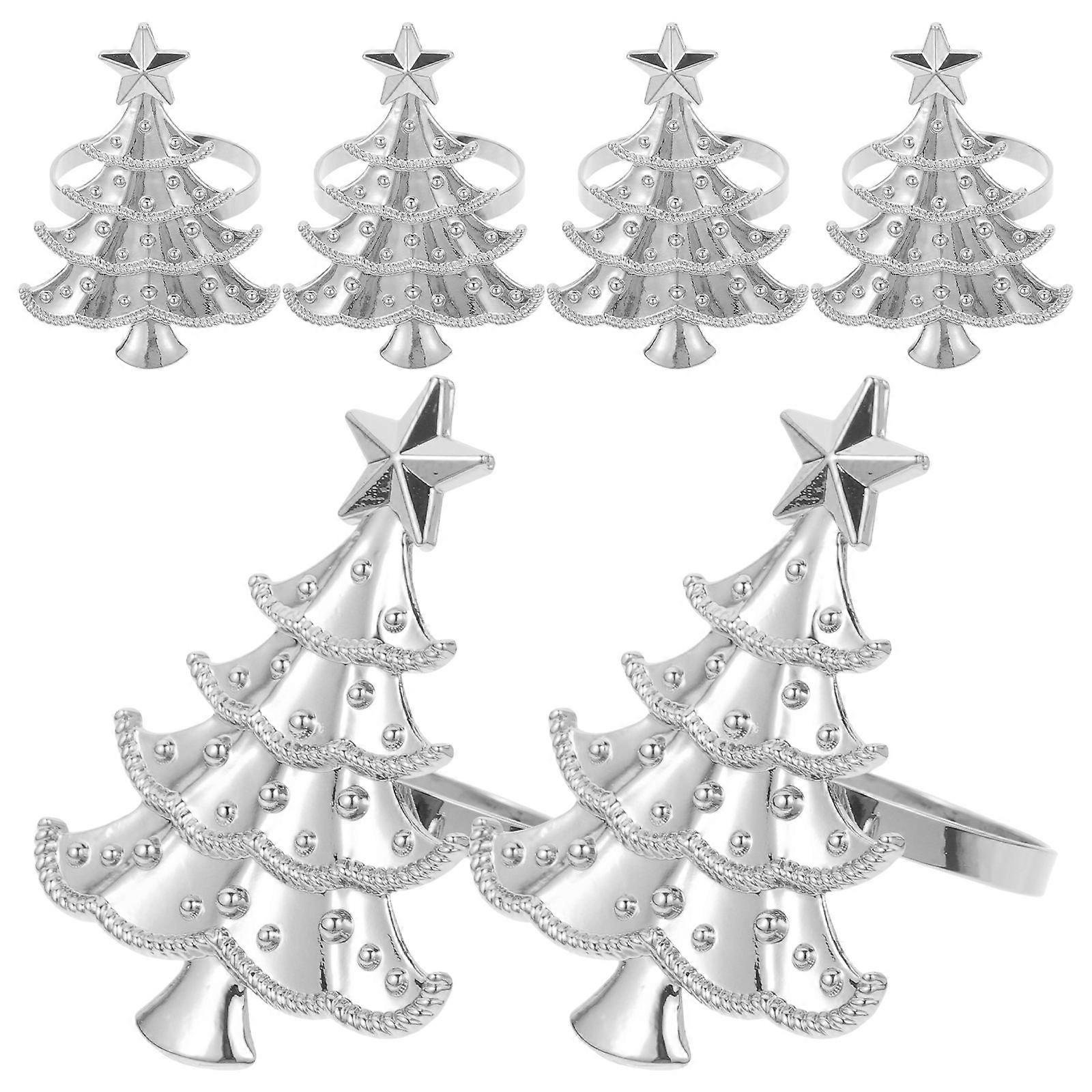 6pcs Christmas Napkin Rings, Metal Napkin Holder Ring Merry Xmas Elegant Silver Christmas Tree Napkin Rings, Silver Holiday Dining Table Decor