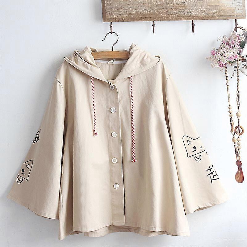 Girls Hooded Coat Jacket Loose Cloak Poncho Short Cape Overcoat Cat Printed Tops