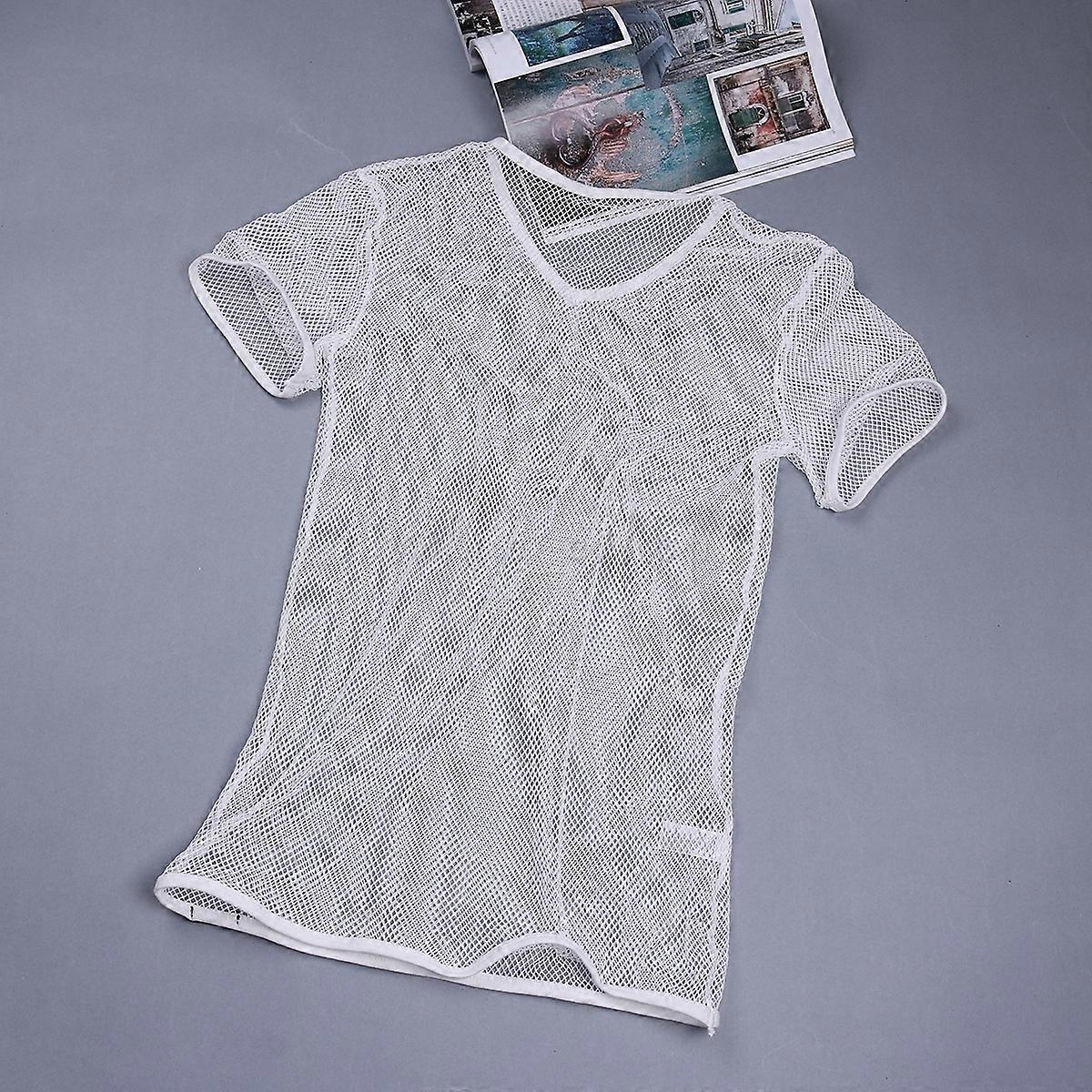 Men Underwear Transparent T-shirt Short Sleeve Mesh Top Undershirt Nightwear New