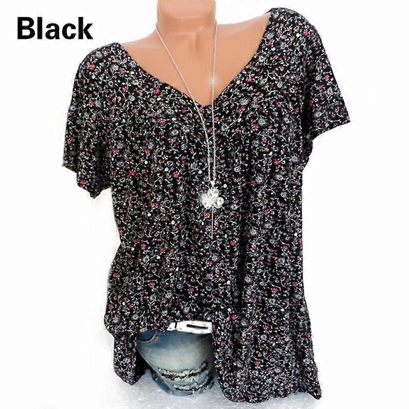 Women V Neck Short Sleeve T-Shirt Summer Baggy Casual Blouse Shirt Top Plus Size