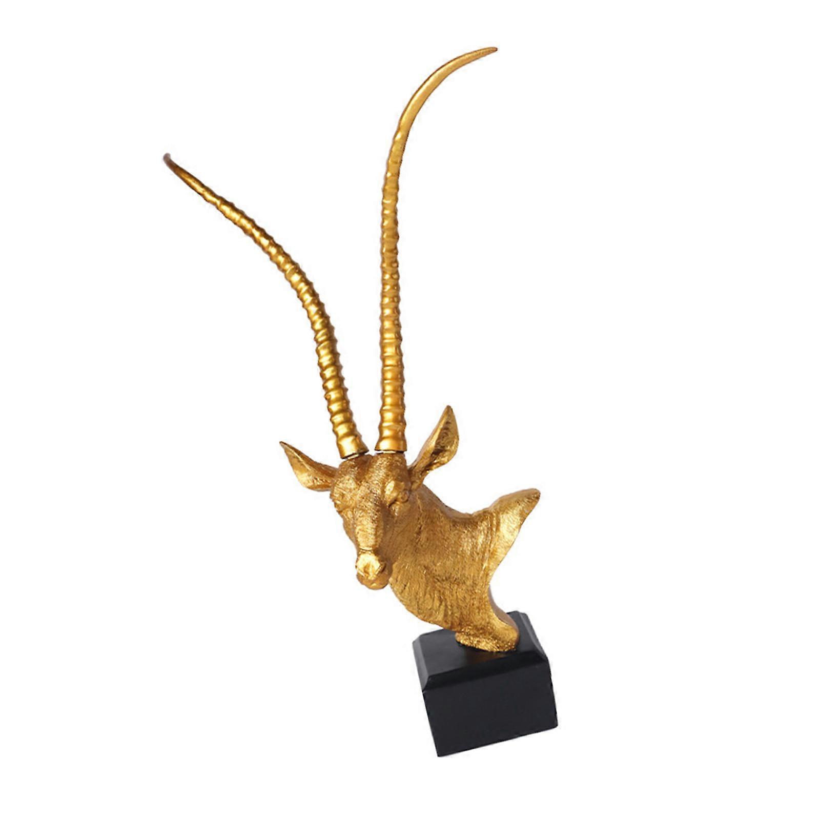 Modern Resin Antelope Head Sculpture with Base for Farmhouses Home Office Living Room Bookshelves Decorative Ornament Gold