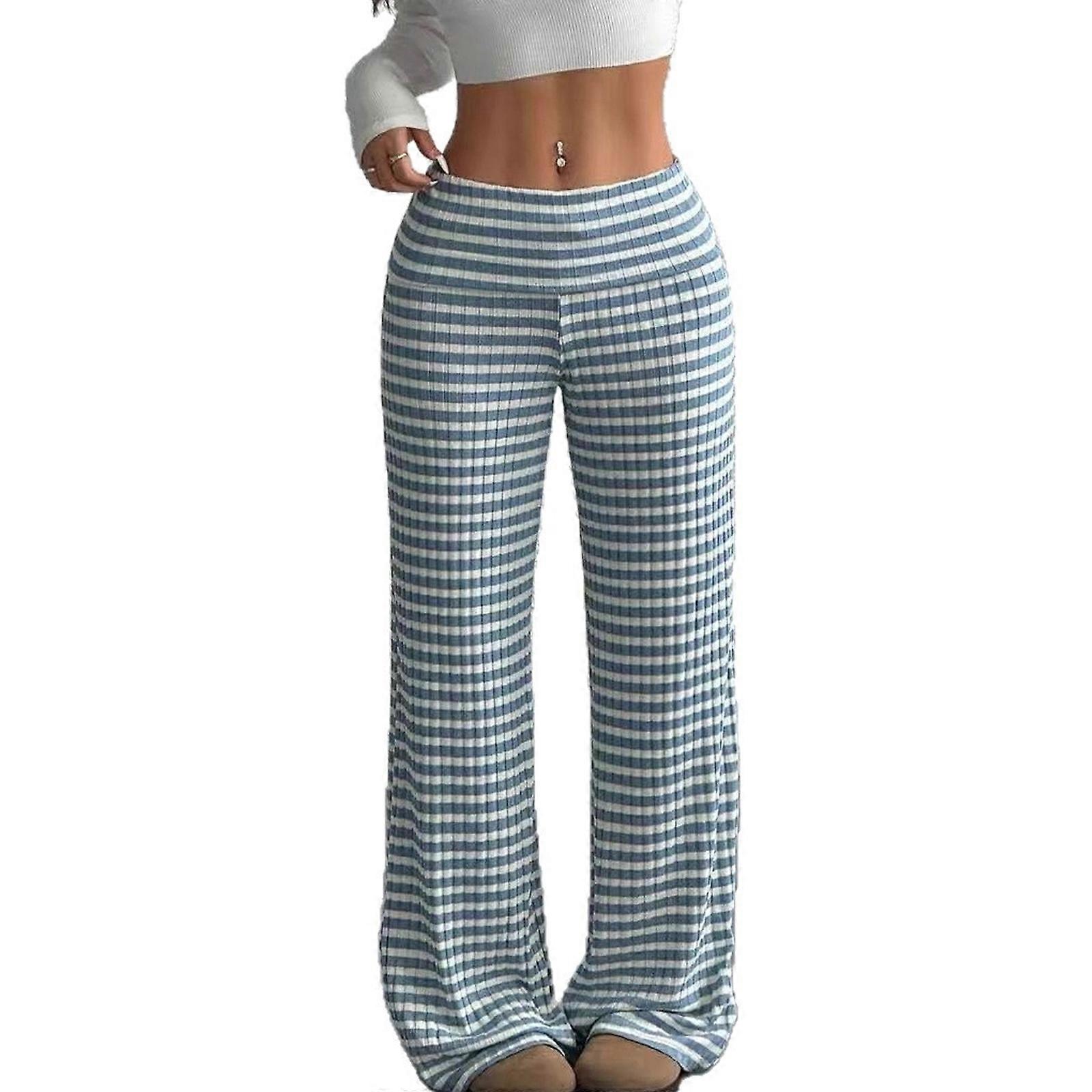Women's Casual Striped Straight Leg Pants In Soft Polyester Fabric For Comfort Breathability And Easy Care During Daily Activities Sky Blue XL