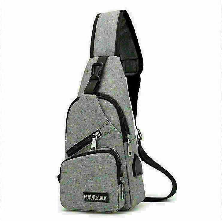 Men's Leather Chest Bag Shoulder Pack USB Charging Port Sports Crossbody Handbag