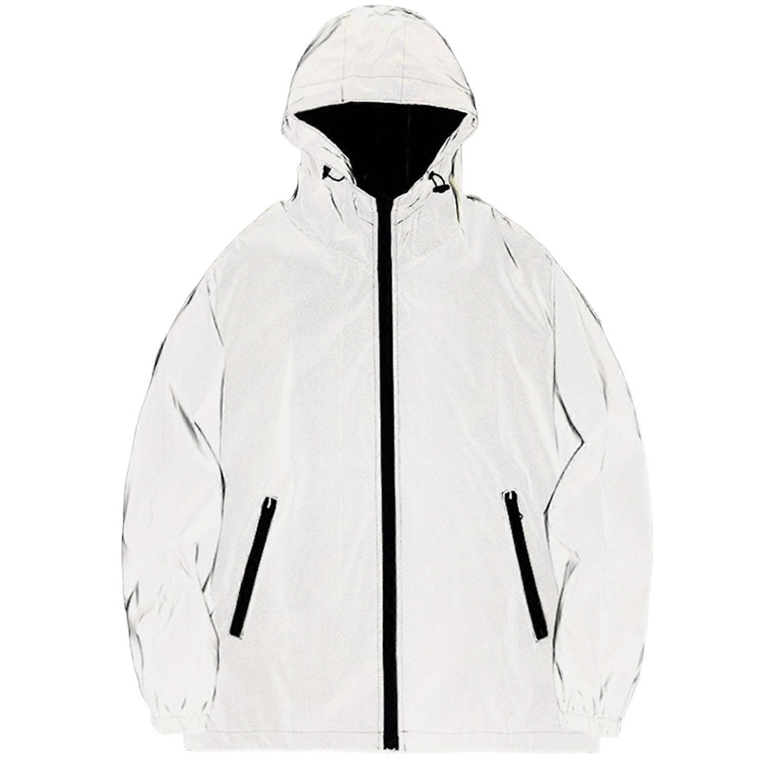 Unisex Reflective Jacket Cycling Jacket Outdoor Windbreaker Running Cycling Coat Zippered Hooded Fluorescent Clothing B XL