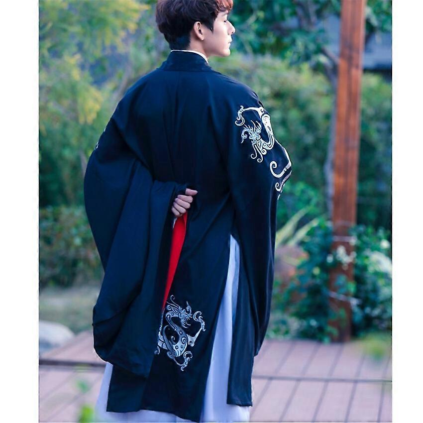 Chinese Style Hanfu Dress Man Traditional Embroidery Cardigan Folk Dance Costume