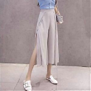 Sexy Split Wide Leg Pants Women Fashion Summer Chiffon Cropped Trousers Party