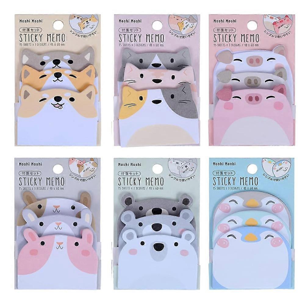 270 Sheets 6 Pads Cute Cartoon Sticky Notes Kawaii Animals Shape Markers Flags Self-Stick Memo Pads Office Gifts Tab Supplies