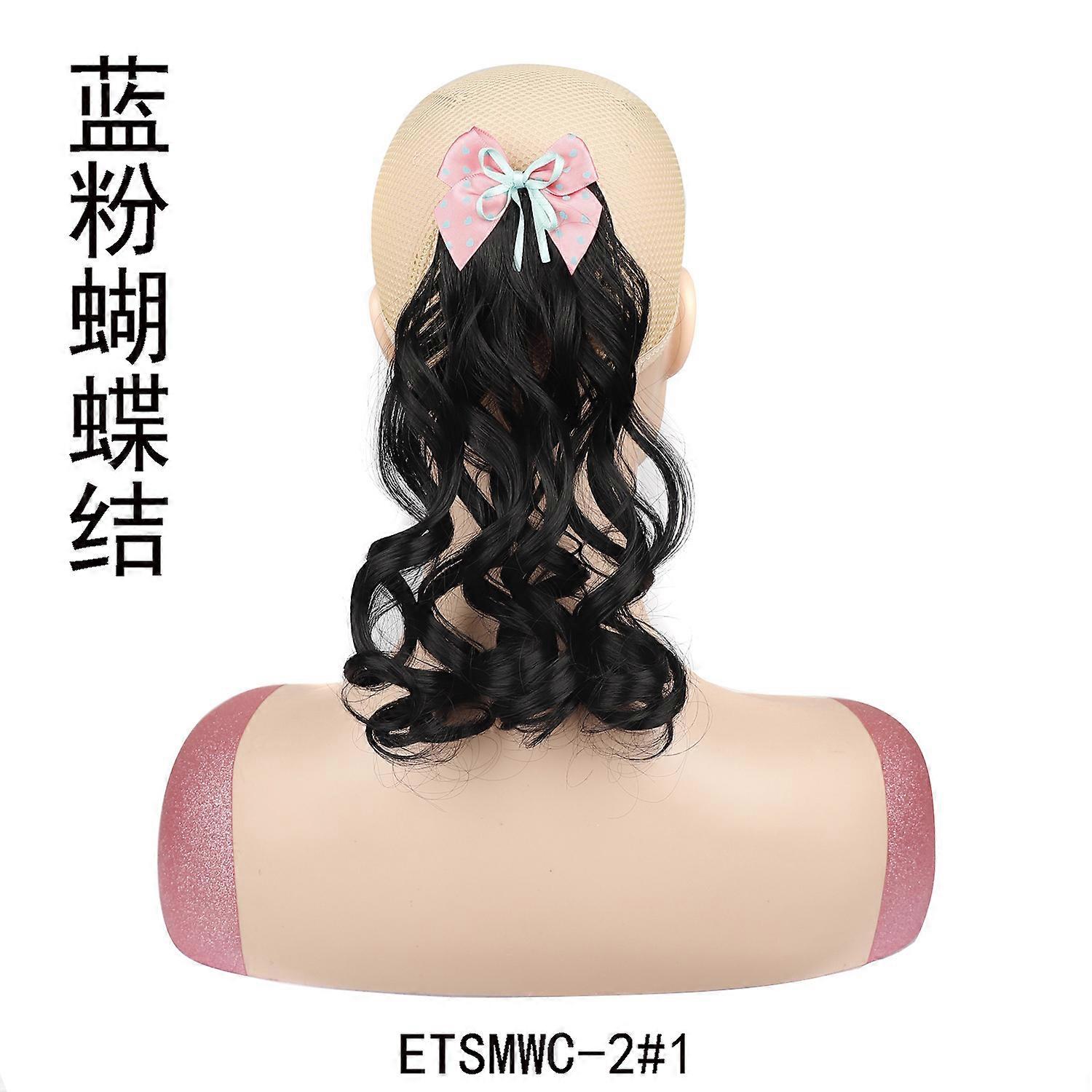 Children's hair accessory with bow, short curly ponytail wig for girls, children's bow wig ponytail