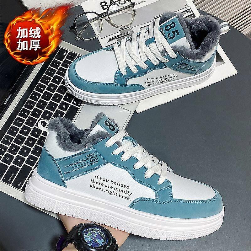 Men's autumn and winter trendy brand youth casual sports white flat shoes winter fleece-lined warm trendy shoes