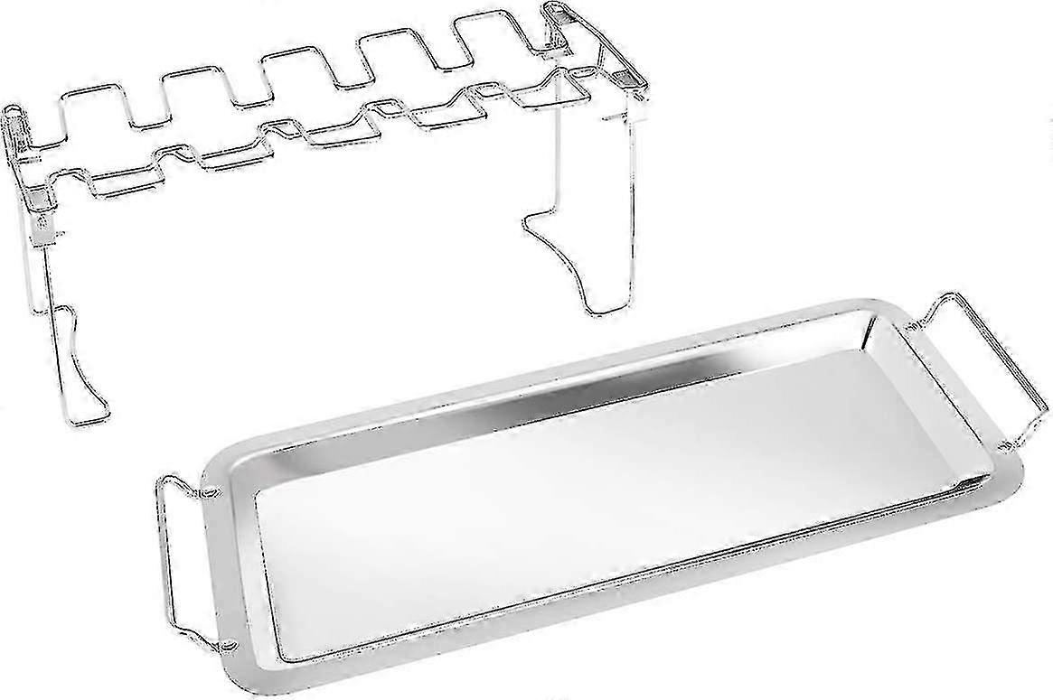 Chicken leg rack with drainer, suitable for grilling in smokehouses, charcoal grills, and ovens, made of stainless steel.