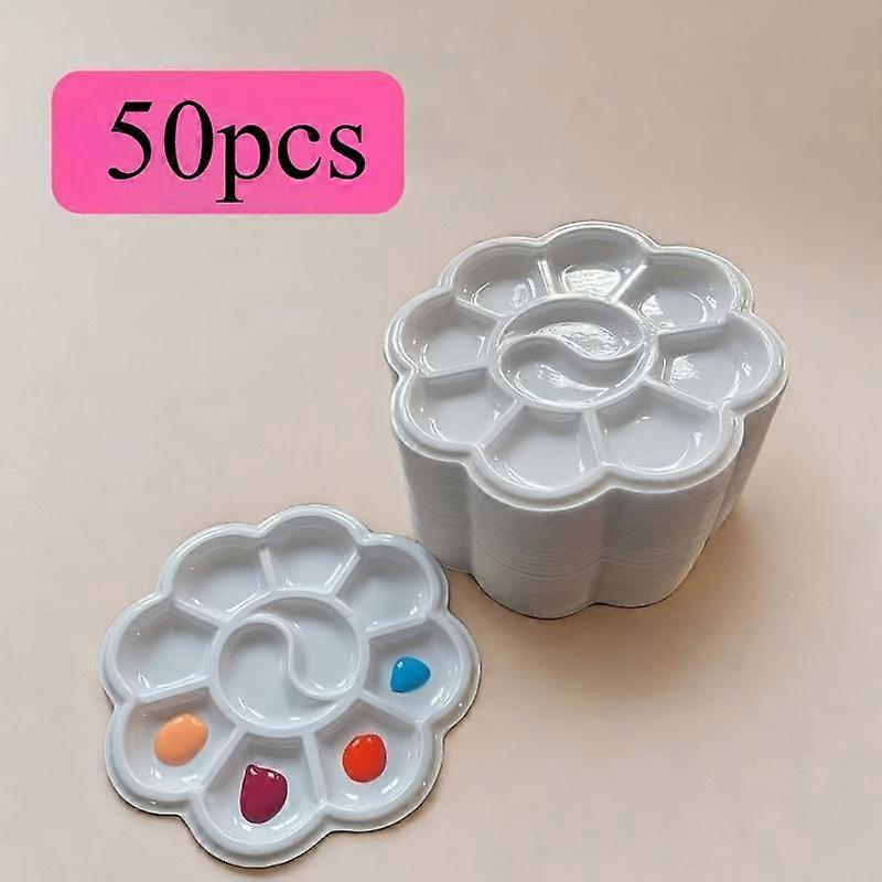 50pcs Plastic Paint Mixing Palettes Set, Transparent/White Portable Soft Thin Palette for Watercolor, Gouache Artistic Painting