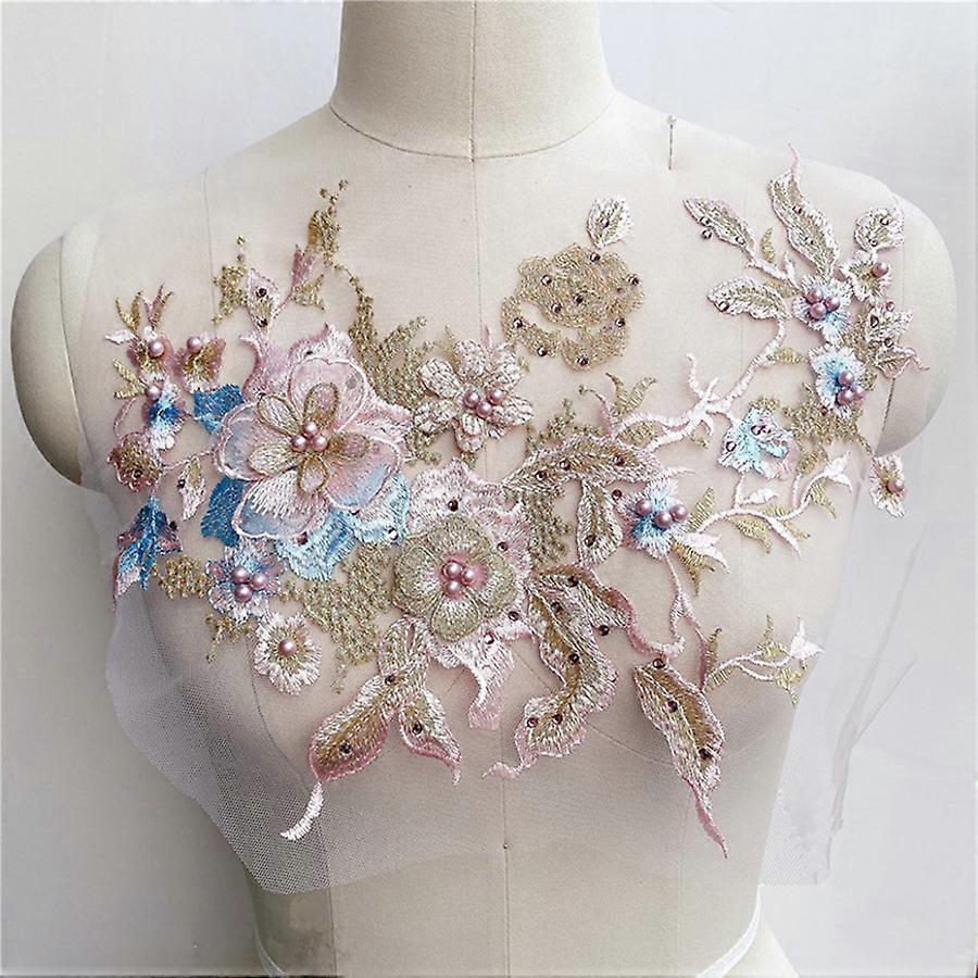3D Embroidered Sewing On Patches For Clothing Flower Lace Patch Wedding Party Gown Bridal Dress Fabric Appliques DIY Repair