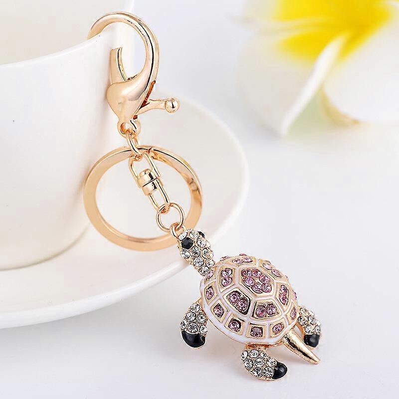 Pink/Gray/Rainbow Turtle Crystal CZ Pendant Keychain Girl Car Key Ring Key Chain