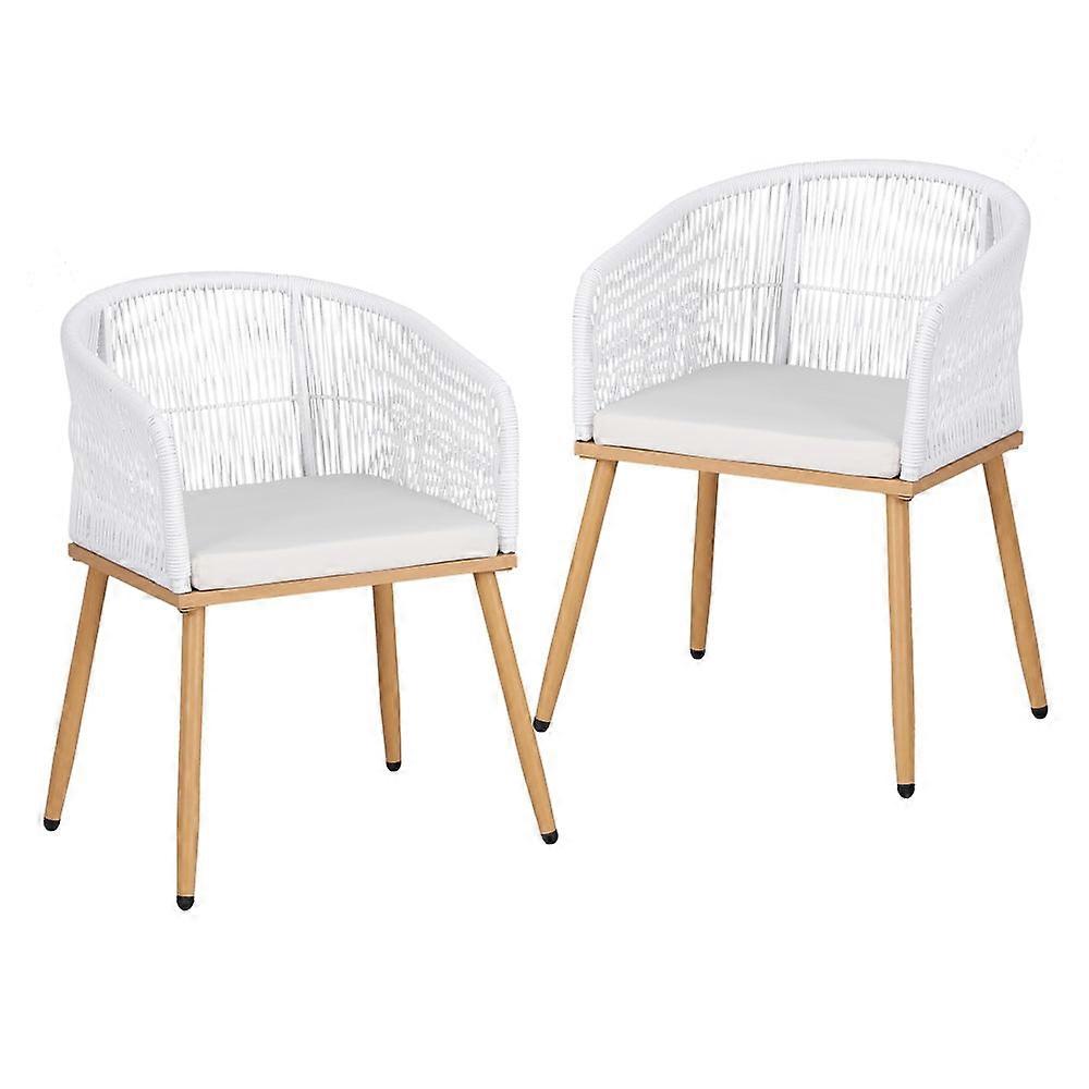 Gardeon 2Pc Outdoor Wicker Patio Furniture Garden Steel White Dining Chairs