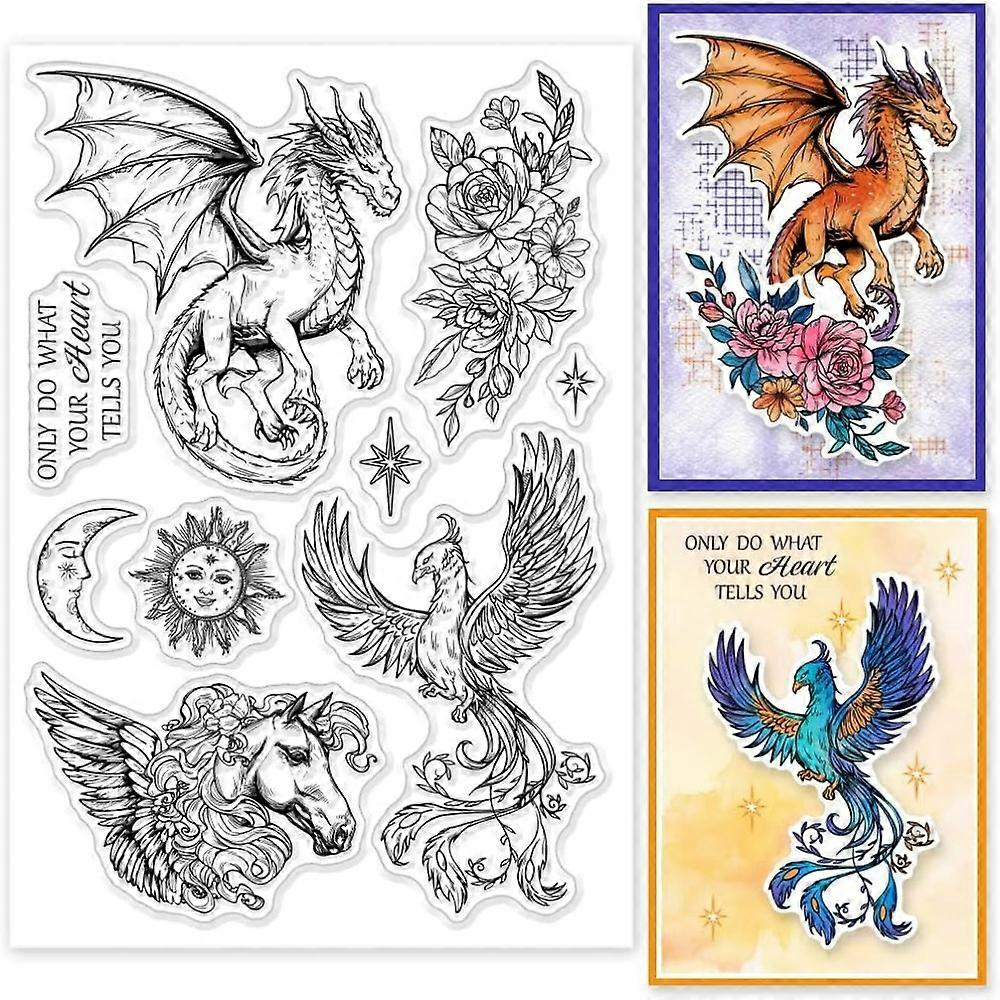 1pc Magical Animals Silicone Clear Stamps Dragon Phoenix Flying Horse Transparent Stamp Seals for Card Making DIY Scrapbooking