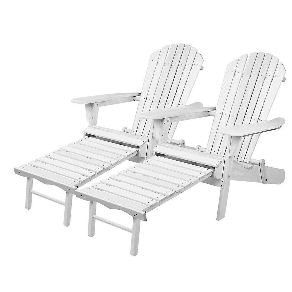Gardeon 2Pc Adirondack Outdoor Chairs Wood Foldable Sun Lounge Patio Furniture Loungers