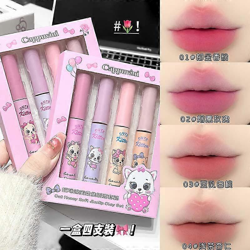 CAPPUVINI Cat-Shaped Cotton Matte Lip Mud Set - Nude Matte Milk Cake Lip - Affordable Lip Gloss/Lipstick