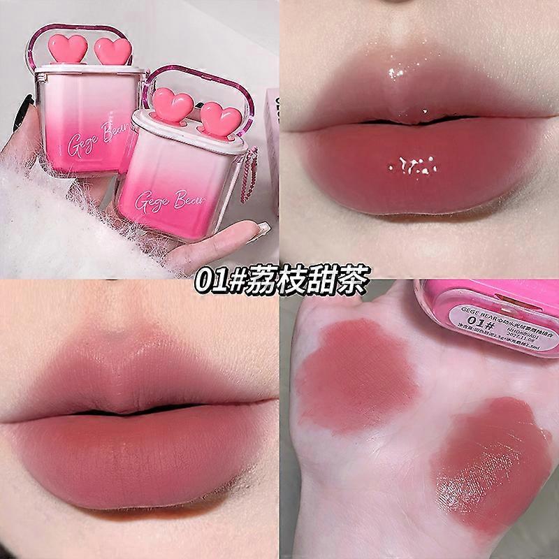 Gege Bear Heart-Fluttering Glossy Matte Lip Gloss Set: Brightens Skin Tone, Cute Lip Mud, Lip Gloss, Lipstick Makeup