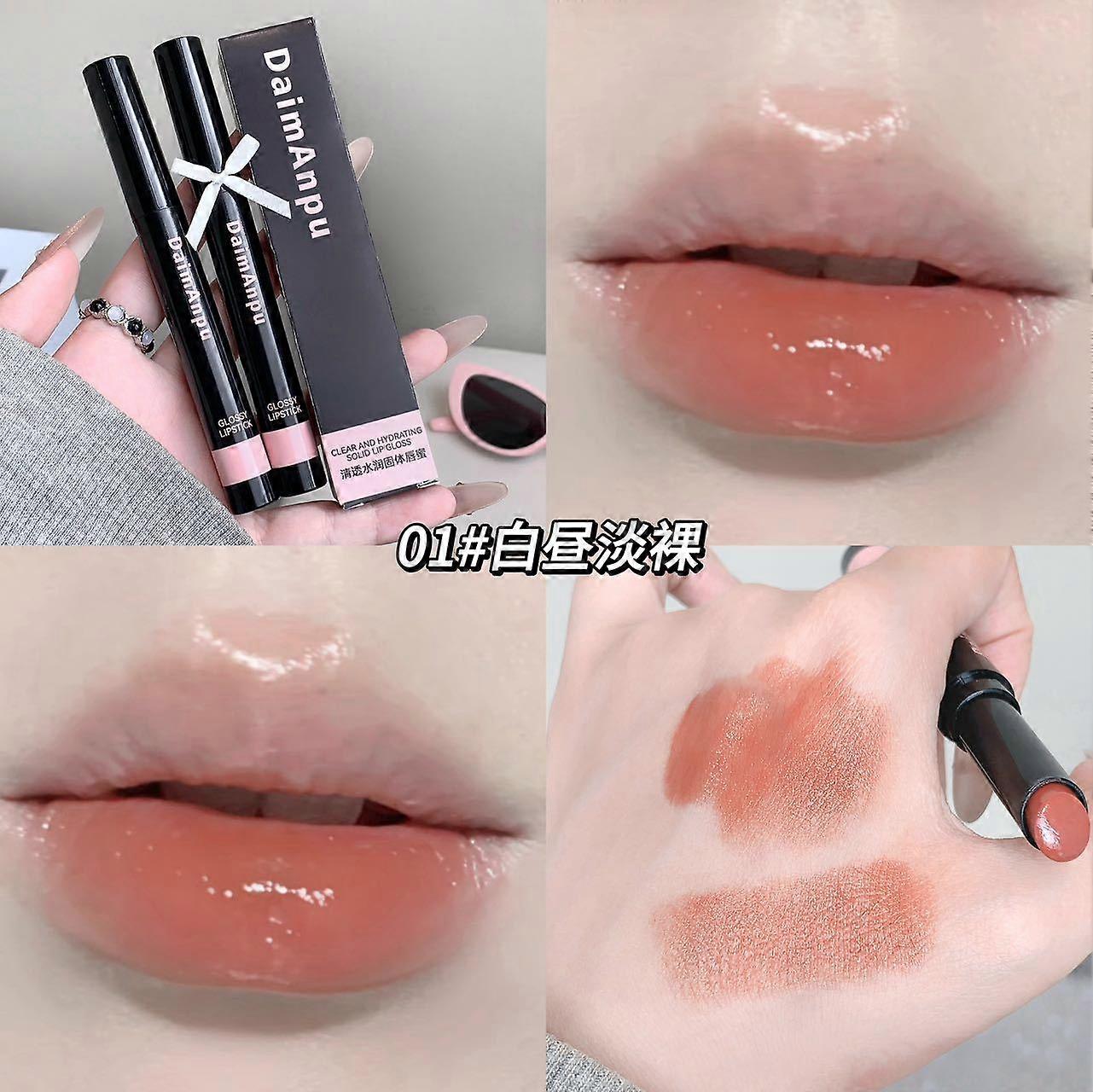 DAIMANPU Clear and Moisturizing Solid Lip Gloss, Faux Natural Lip Makeup Jelly Lip Color, Lip Glaze, Lipstick