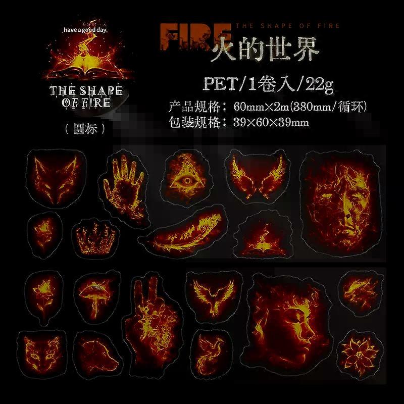 1Roll Writing DIY Stickers daily Adhesives Tape Fire Shape Supplies Scrapbook 60mm*2m Fired PET Landscaping Handbook Tapes