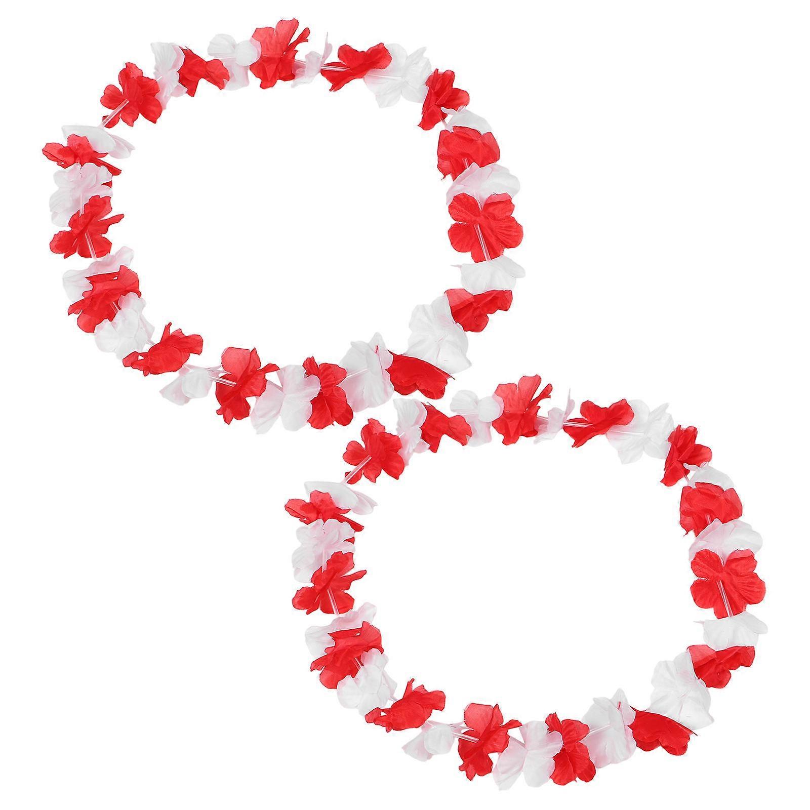 Hawaiian Flower Leis Necklace for Decoration 2Pcs Red Fabric Party Accessories