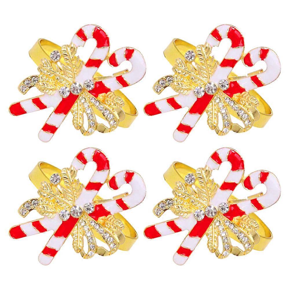White Alloy Candy Cane Napkin Rings for Wedding Table 4Pcs Napkin Holders