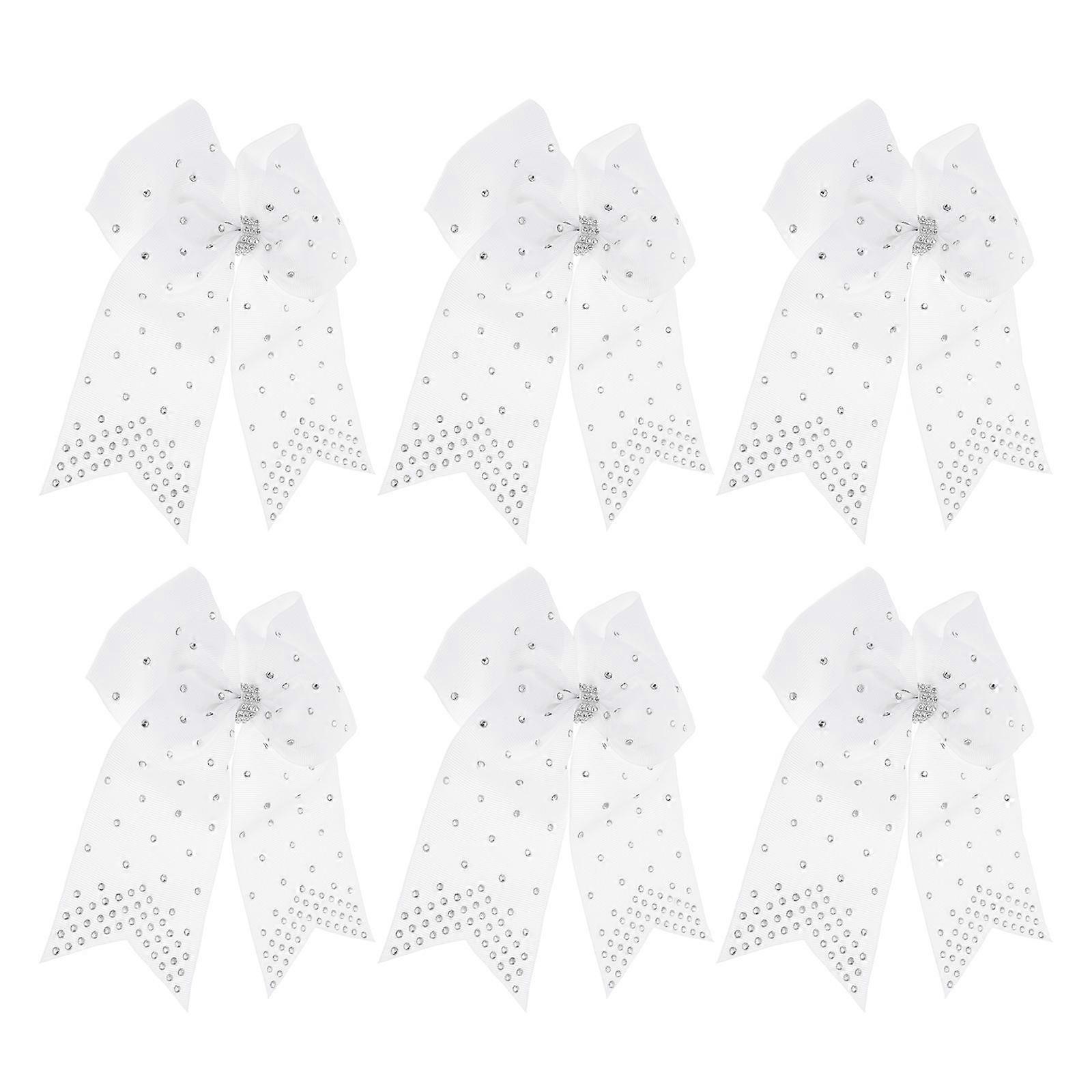 6Pcs Large White Cheer Bow Glitter Hair Ties for Girls Rhinestone