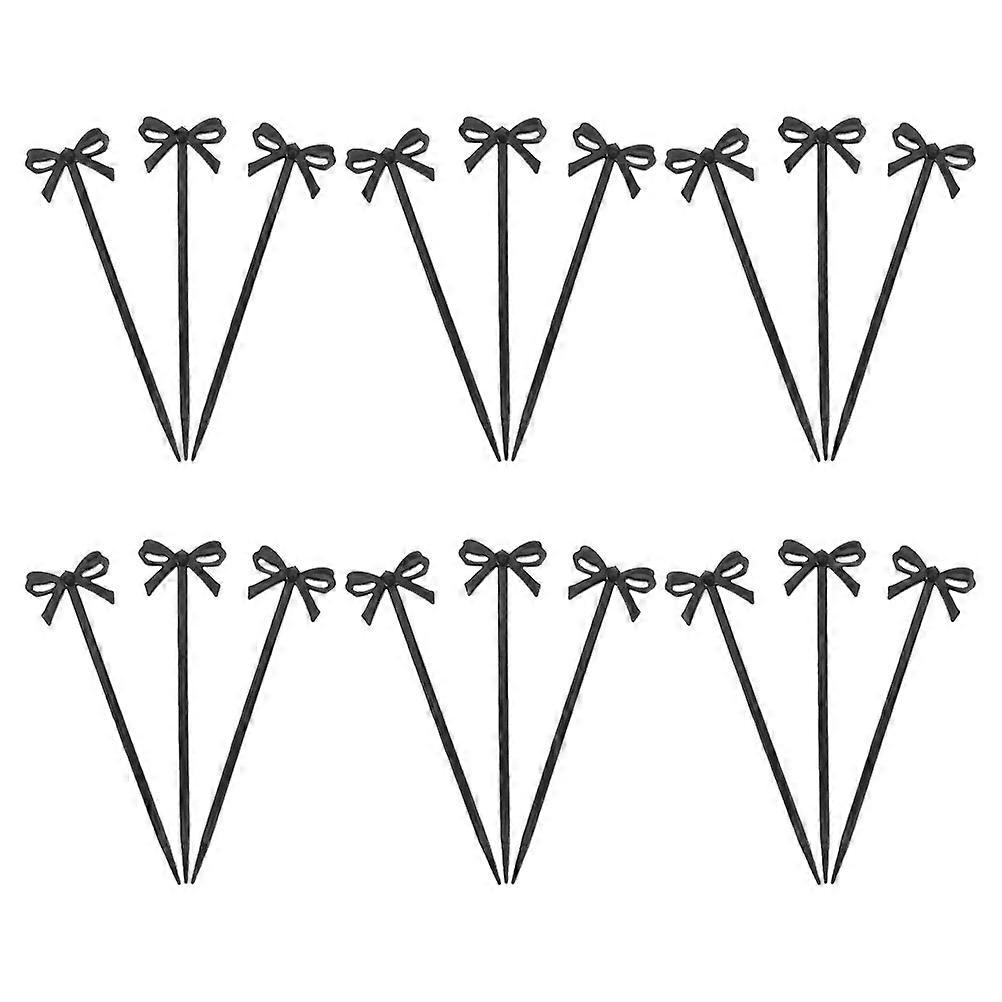 Cute Black Bow Food Picks for Parties and Weddings Plastic Fruit Sticks for Kids and Adults 24pcs
