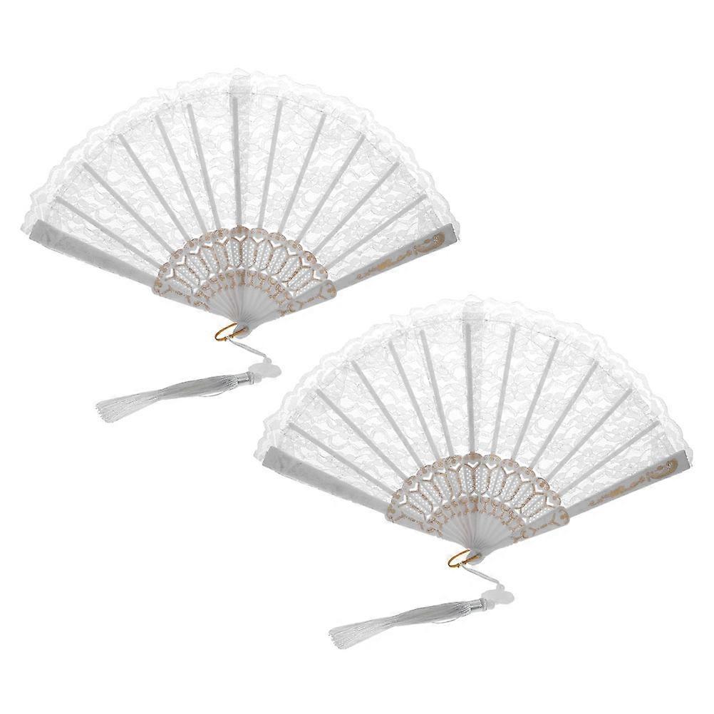 Lace Embroidered Hand Fan Folding Fan for Dress Up 2Pcs Set