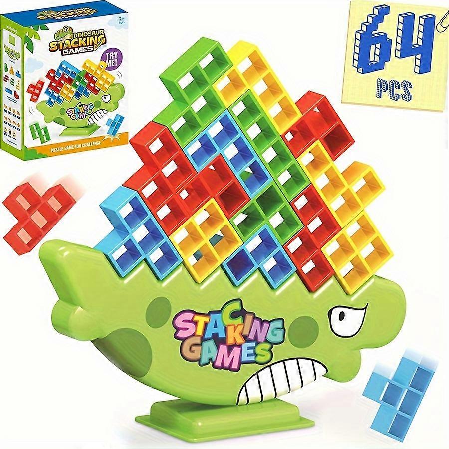 64pcs Dinosaur Tetra Tower Balance Stacking Games 2+ Players Kids Teens & Adults Board Game Family Party Team Game Toys Gift