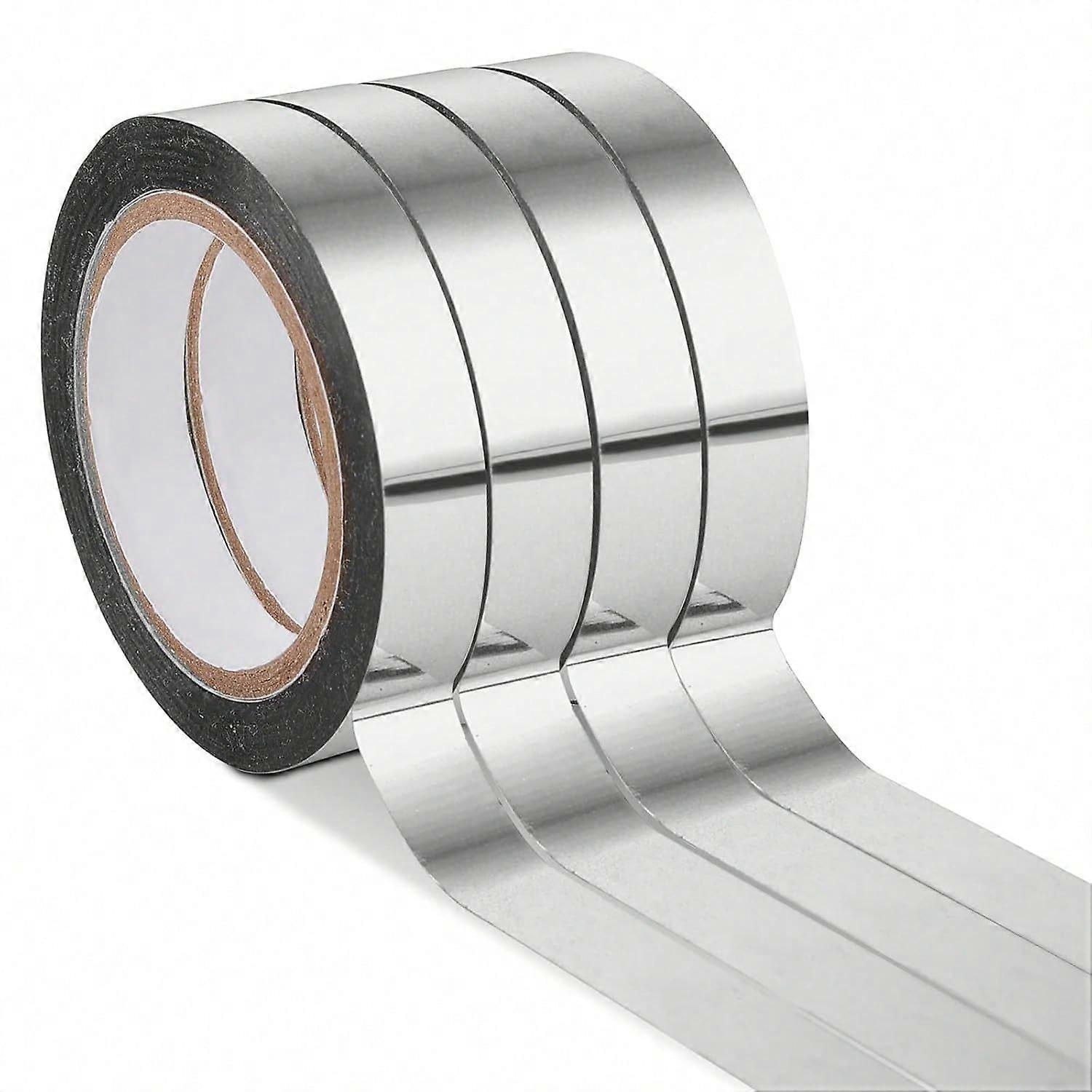 4 Rolls Silvery Metallic Mirror Tape DIY Graphic Art Tape Self-Adhesive Metalized Polyester Film Decor Tape for Wall