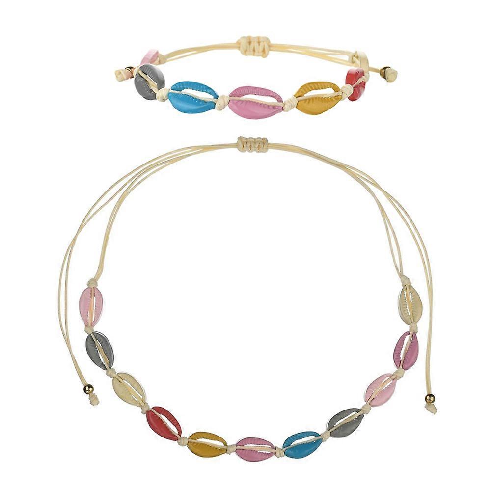 Discover the elegance of our hand-painted alloy sea shell jewelry set, featuring a beautifully crafted and bracelet. The vibrant colors and intricate designs make this set a standout accessory for any outfit. The alloy, nylon rope material ensures durability and a comfortable feel, while the adjustable length offers a fit for any wrist size. Features - Color: Assorted Color -Material:Alloy, nylon rope - Size: 78.00X78.00X2.00cm/30.65X30.65X0.79in - Size: 33.00X33.00X2.00cm/12.97X12.97X0.79in - material: crafted from alloy sea shells, offering a comfortable touch and ensuring color retention - painting: features vibrant and stylish hand painted designs, making it a versatile accessory for any outfit -Fine weaving: the bracelet is meticulously woven, providing a soft and comfortable fit for everyday wear -Adjustable length: designed with an adjustable length to fit various wrist sizes, ensuring ease of wear and a fit -Versatile use: ideal for any occasion, this jewelry set adds a touch of personality and becomes a fashion statement Package list: 2 Bracelets