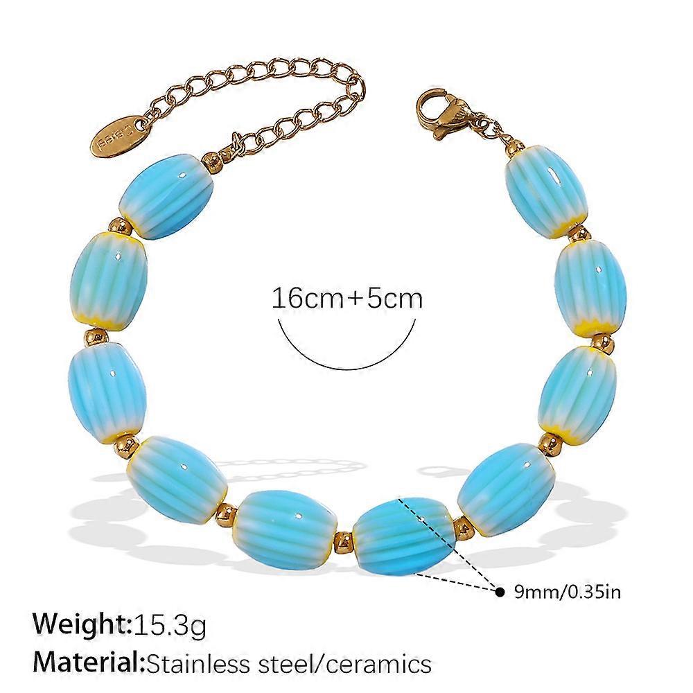 Stainless steel 18K gold plated necklace/bracelet with ceramic beads, versatile and elegant.