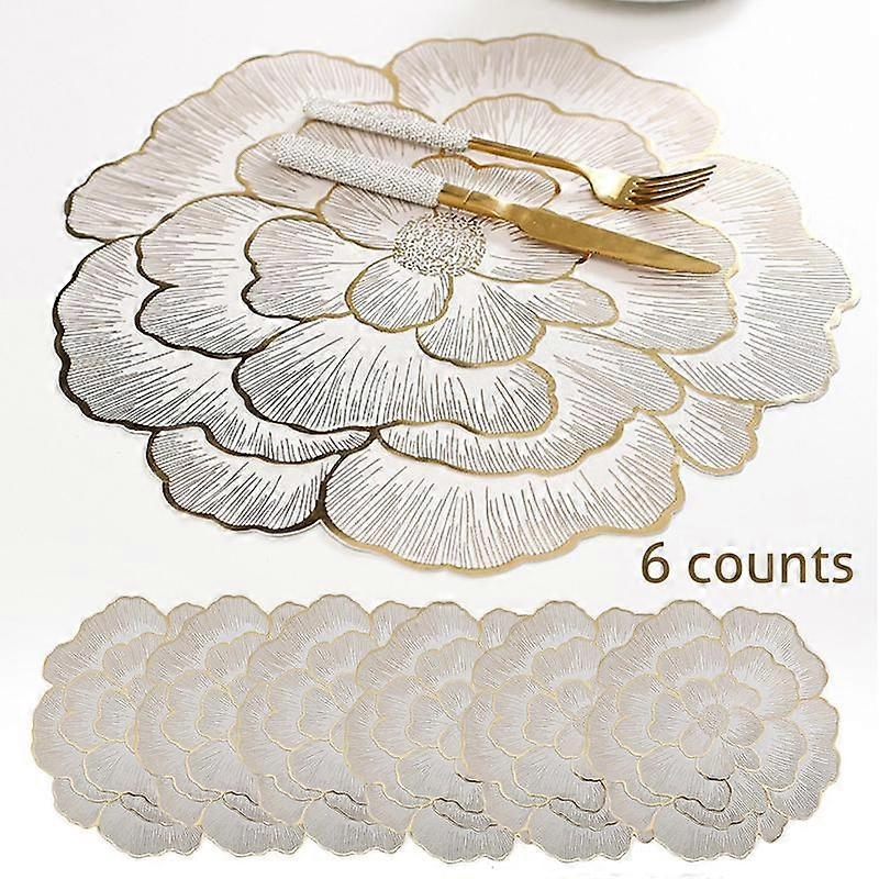 Floral Pattern Placemat, 6 Counts/set Heat Resistant Non Slip Table Mat, Kitchen Gadgets, Waterproof Placemat for Home Kitchen Dining Room W