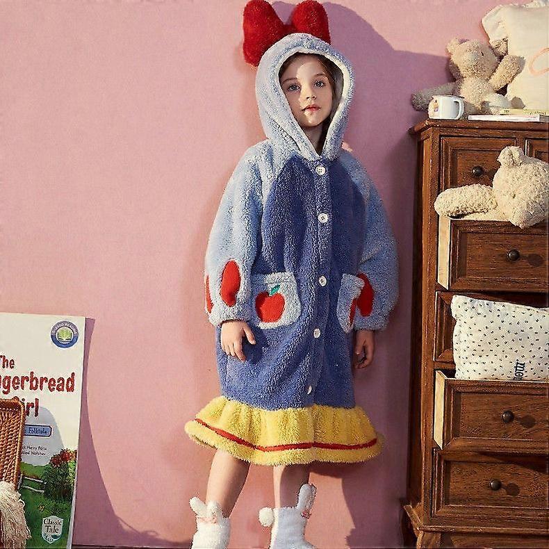 2025 A/W Flannel Princess Bathrobe - A Class Cartoon Cute Hooded Front Button soft Warm Absorbent Homewear for Girls 110-150cm