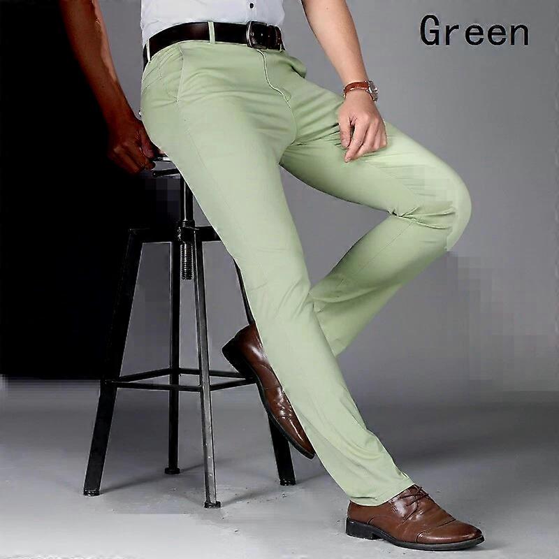 Men Straight Leg Pants Cotton Solid Stretch Thin Slim Fit Casual Long Trousers