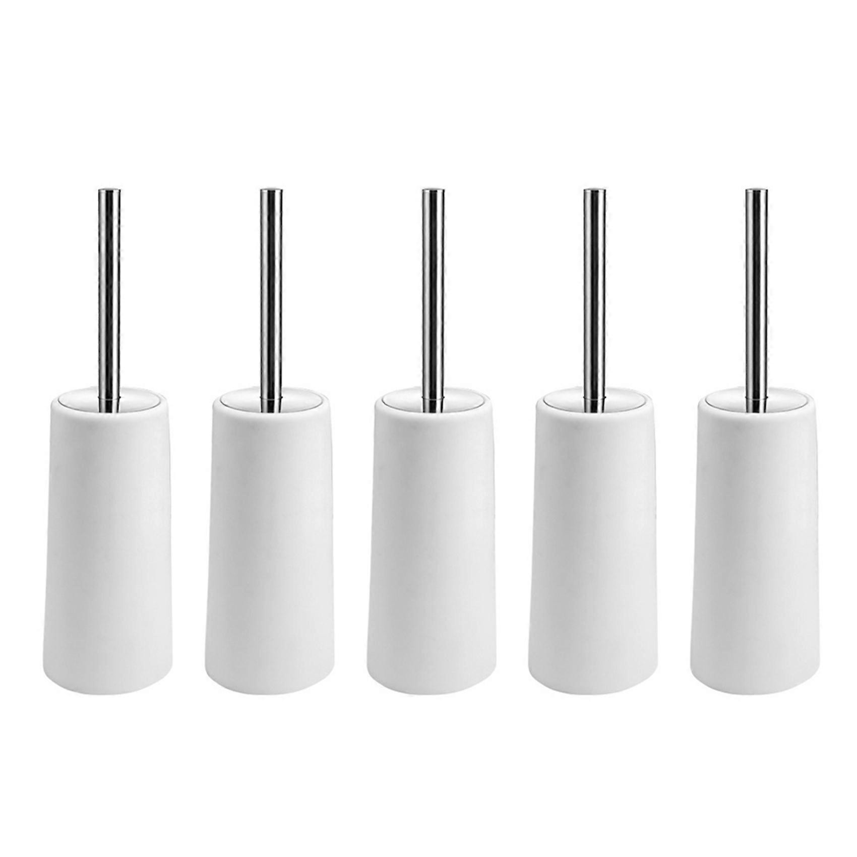 Toilet Brush and Holder, 5 Pack Toilet Brush with 304 Stainless Steel Long Handle, Toilet Bowl Brush White